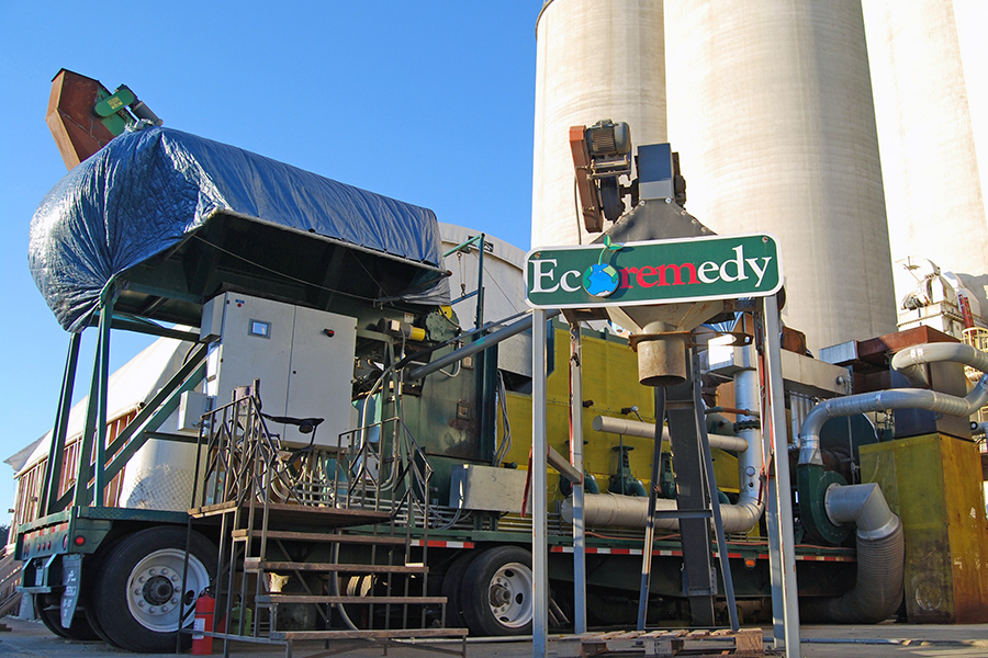 In late 2008, Ecoremedy® deployed a mobile demonstration of Fluid Lift Gasification™ (FLG) at the Tyson Foods’ Bolivar Feed Mill located in Fairmount, Georgia. During the one-year project, Ecoremedy demonstrated the viability and economics of using FLG technology for the conversion of waste poultry litter, spoiled feed, mortality, and other waste products for steam production at the feed mill. The project also successfully demonstrated highly available nutrient recovery from the processed poultry litter which was collected and sold to local soybean farmers as an all-natural fertilizer. During and after the project a number of local farmers have continued to work with Ecoremedy in an effort to secure a continuous source of fertilizer from other FLG projects.